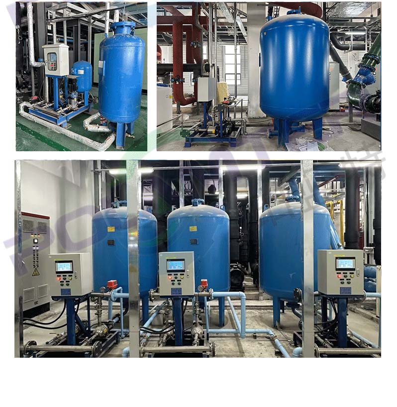 真空脱气定压补水装置是我司自主研发先进技术:实现集中供热及中央空调系统定压、膨胀、补水、三位一体的新型设备。该设备在系统中起到稳压、自动补水、膨胀自动泄水,脱除系统内游离气体及溶解气体等作用。使系统始终处于高效、环保、节能的运动状态。
